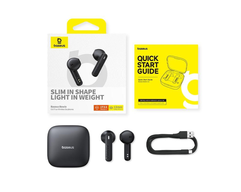 BASEUS Bowie E16 Bluetooth sluchátka Bezdrátová sluchátka TWS s kabelem USB to Type-C 0,3 m – černá