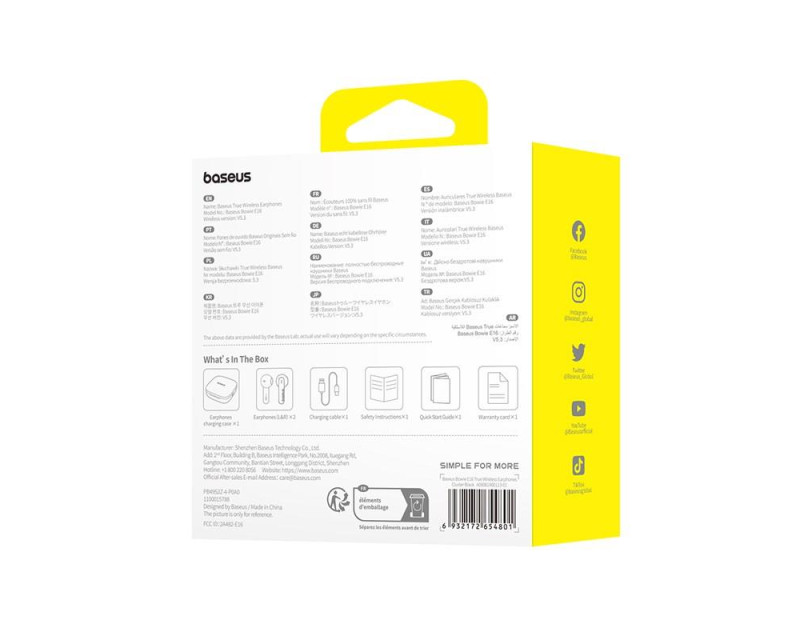 1 pár x sluchátka Bluetooth 1 x nabíjecí krabička 1 x kabel USB to Type-c (černý, 0,3 m) 1 x anglická a čínská uživatelská příručka Další položky nejsou součástí dodávky