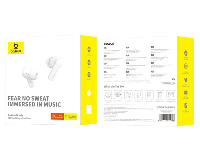 Objevte novou kvalitu zvuku se sluchátky TWS Baseus Bowie E19. Tato bezdrátová sluchátka byla navržena tak, aby vám poskytla skvělý zážitek z poslechu, ať jste kdekoli. S dobou provozu až 33 hodin s nabíjecím pouzdrem vás mohou doprovázet i po celý den. Sluchátka jsou vodotěsná na úrovni IPX5, odolná proti potu a dešti, takže jsou ideální volbou pro intenzivní trénink i každodenní výzvy.