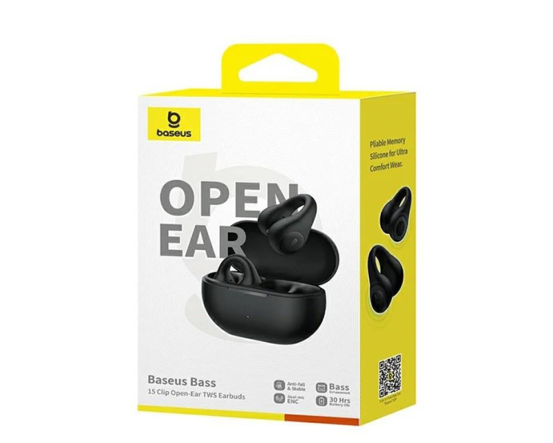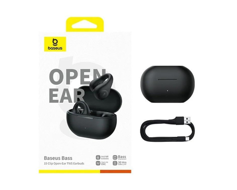Bluetooth sluchátka Baseus Bass 15 Clip Open Ear černá