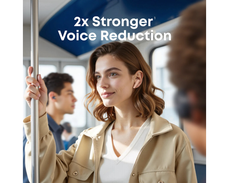 Telefonní a video hovory budou s těmito sluchátky také hračkou díky 6 integrovaným mikrofonům, AI rušení okolního hluku a speciálnímu algoritmu na eliminaci hluku větru.