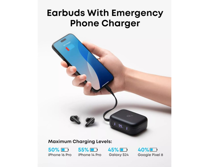 Na jedno nabití vydrží poslouchat až 12 hodin, pouzdro tuto dobu prodlouží na 192 hodin. Desetiminutové rychlé nabíjení vám zajistí dalších 5 hodin poslechu.
