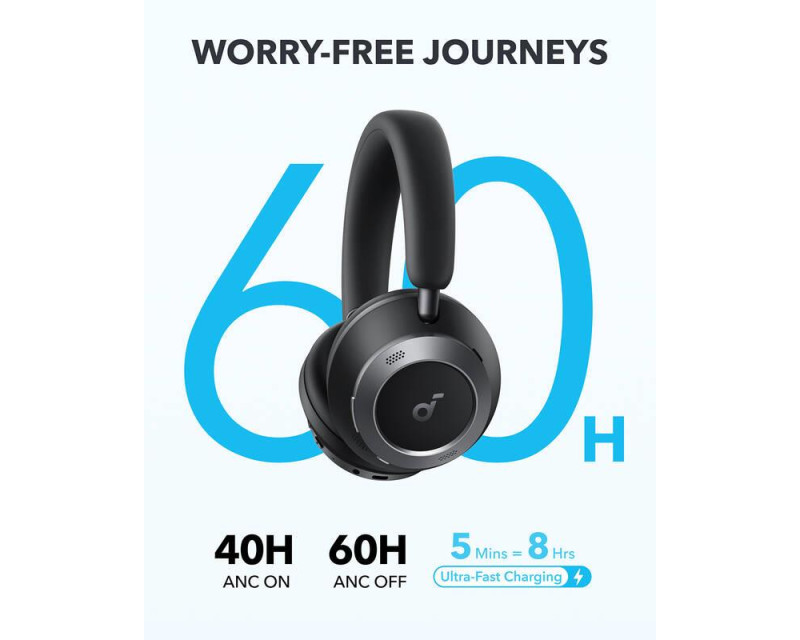 Dlouhotrvající poslech: Poslouchejte až 40 hodin s ANC a 60 hodin bez. Zažijte ultrarychlé nabíjení – pouhých 5 minut nabíjení nabízí 8 hodin hudby.