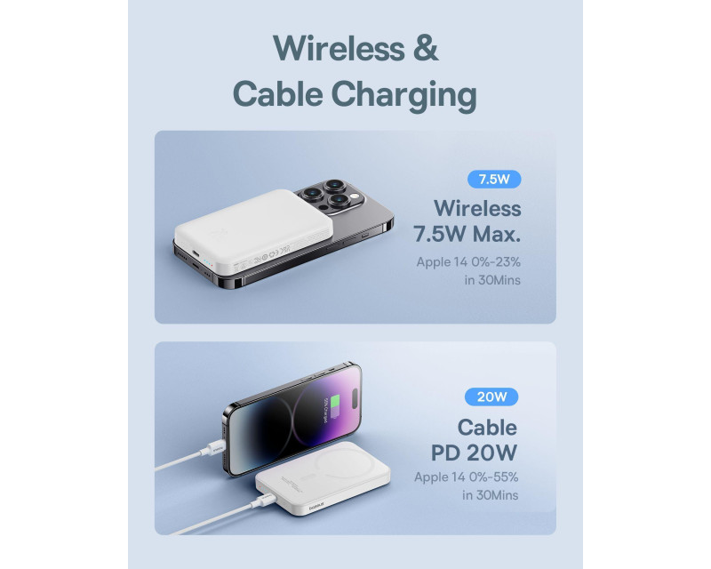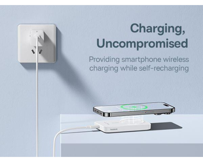 Magnetická mini powerbanka Baseus je ideálním řešením pro všechny, kteří si cení pohodlného nabíjení svých zařízení. Díky velké kapacitě 5000 mAh vám tato malá powerbanka umožní několikrát dobít smartphone, aniž byste museli hledat zásuvku nebo přerušovat používání zařízení. Jeho magnetický design je nejen estetický, ale také funkční, protože pevně přilne k vašemu telefonu a umožňuje bezdrátové nabíjení mimořádně pohodlným způsobem. Nyní si můžete užívat plný komfort a spolehlivý výkon kdekoli a kdykoli.