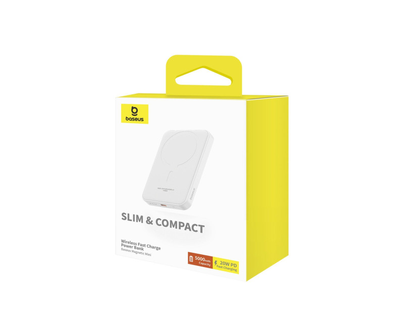 Bezdrátová powerbanka Baseus Magnetic Mini 5000mAh, 20W bílá