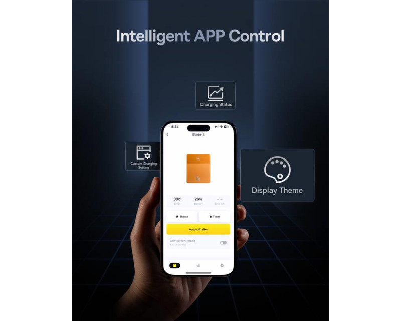 Inteligentní digitální displej poskytuje informace o zbývajícím výkonu, proudu a napětí v reálném čase a nabízí uživatelům přehled o procesu nabíjení.