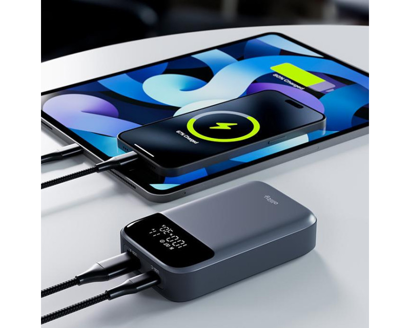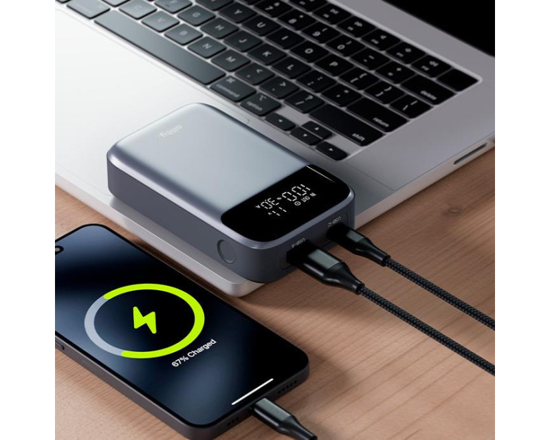 Cestovní baterie Fast PocketPower není jen samotná powerbanka, ale kompletní nabíjecí sada. Získáte vysoce kvalitní 100W kabel USB-C na USB-C, který vám umožní rychle nabíjet jak samotnou powerbanku, tak vaše zařízení. Dva porty - USB-C a USB-A - umožňují nabíjet dvě zařízení současně, což je velmi užitečné, když potřebujete nabíjet například smartphone a bezdrátová sluchátka. Díky univerzálnosti tohoto řešení je powerbanka kompatibilní s celou řadou mobilních zařízení, od chytrých telefonů přes tablety až po některé notebooky.