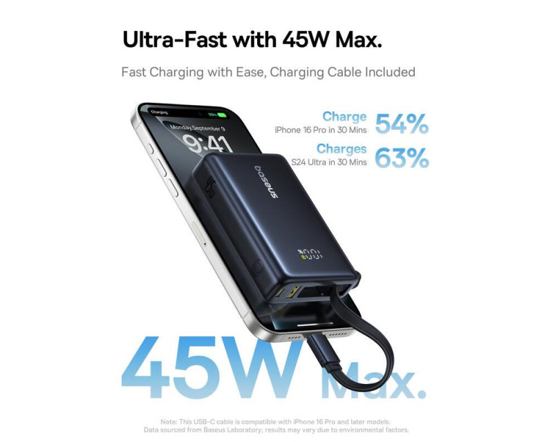 Powerbanka Baseus PicoGo 10000mAh, 45W, s kabelem USB-C černá