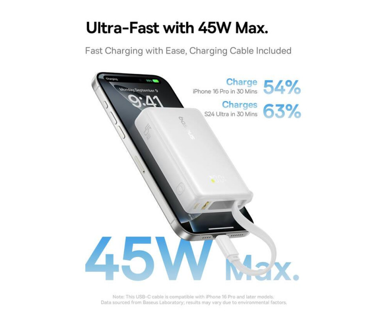 Powerbanka Baseus PicoGo 10000mAh, 45W, s kabelem USB-C bílá