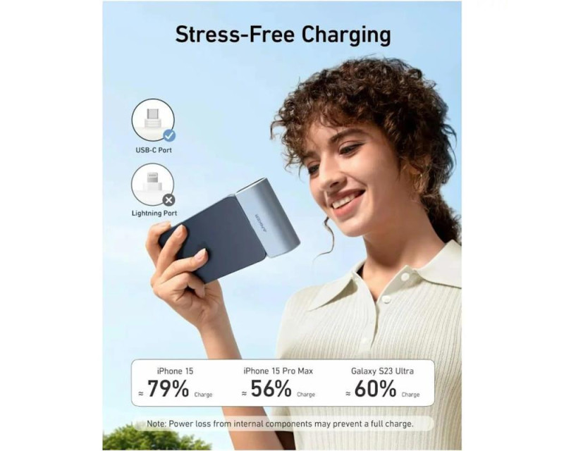 Poznámky: Vzhledem ke skládací konstrukci konektoru USB-C doporučujeme při nabíjení a manipulaci s nabíjeným telefonem držet telefon i powerbanku.