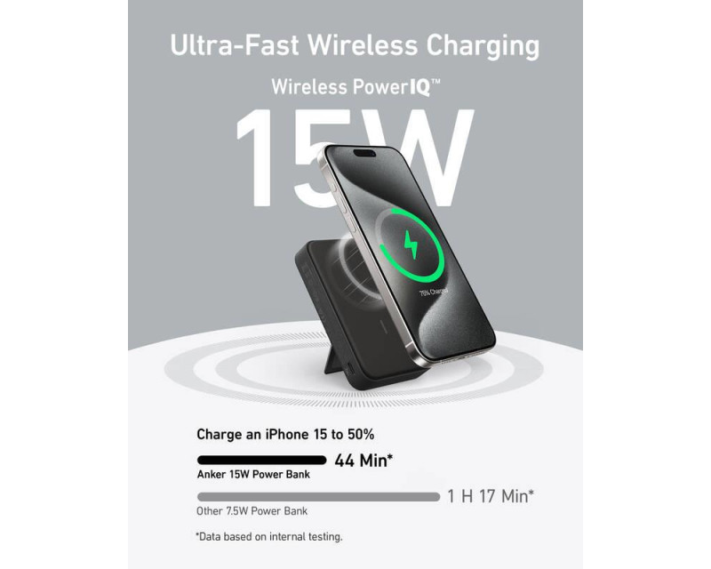 Powerbanka Anker 633 MagGo (A1654) se může pochlubit kapacitou 10 000 mAh, a tak s ní můžete dobít svůj smartphone i opakovaně. Jistě přitom oceníte i podporu bezdrátového nabíjení s certifikací Qi2 a výkonem 15 W (vedle klasického kabelového rozhraní USB-C), díky němuž nepotřebujete k doplňování energie žádný kabel. Praktická je pak i možnost napájení přes magnetické pouzdro.