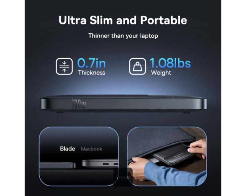 100W Maximální výstupní výkon pro rychlé nabíjení notebooků, smartphonů, tabletů a dalších zařízení.