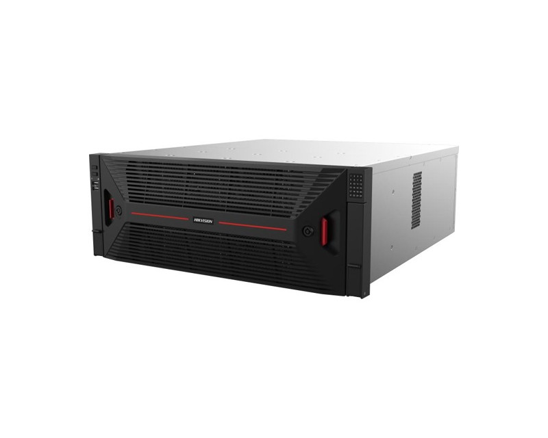 IP záznamové zařízení (NVR) HikVision 128 kanálový síťový digitální videorekordér, komprese H.265+/H.265/H.264+/H.264, vstupní/odchozí šířka pásma 1024Mbps / 1024Mbps, až 32Mpx rozlišení záznamu kamer, 2x HDMI 4K, 1x VGA FullHD, 2x DP 8K, 2x V-DP 8K, 6x USB, RS-485, RS-232, 4x Gigabit NIC, 24x SATA, 1x eSATA, každý HDD až 20TB, RAID 0/1/5/6/10, obousměrné audio, výklopný přední panel pro snadnou instalaci HDD, poplachové I/O: 16/8, napájení: 100~240V AC 75W (bez HDD), 19" 4U, redundantní zdroj