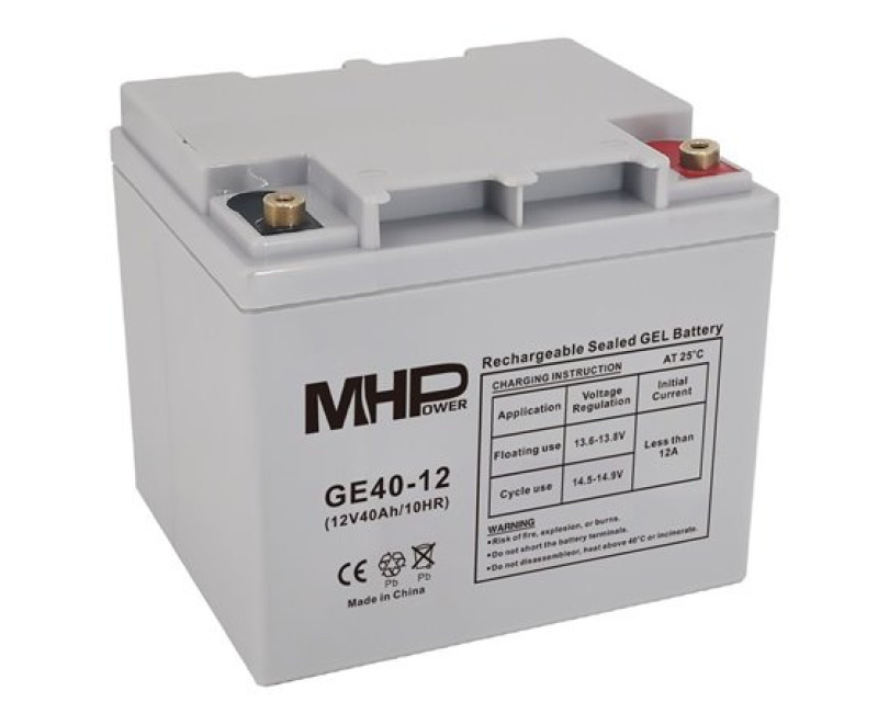 MHPower GE40-12 Gelový akumulátor - LEHCE POŠKOZENÉ, 12V/40Ah, Terminál T1 - M6, Deep Cycle