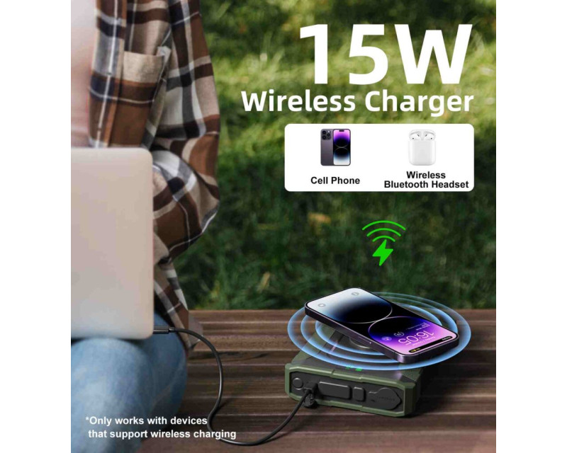 Powerbanka disponuje celkem 6 výstupy, abyste mohli současně nabíjet více zařízení. Ve výbavě outdoorové powerbanky je USB-A, USB-C, DC jack a cigaretová zásuvka 12 V/ 10 A. O přehled stavu powerbanky a průběhu nabíjení budete informování prostřednictvím LED displeje. V powerbance je zabudované LED světlo, které poslouží jako baterka a nebo osvětlení při kempování.