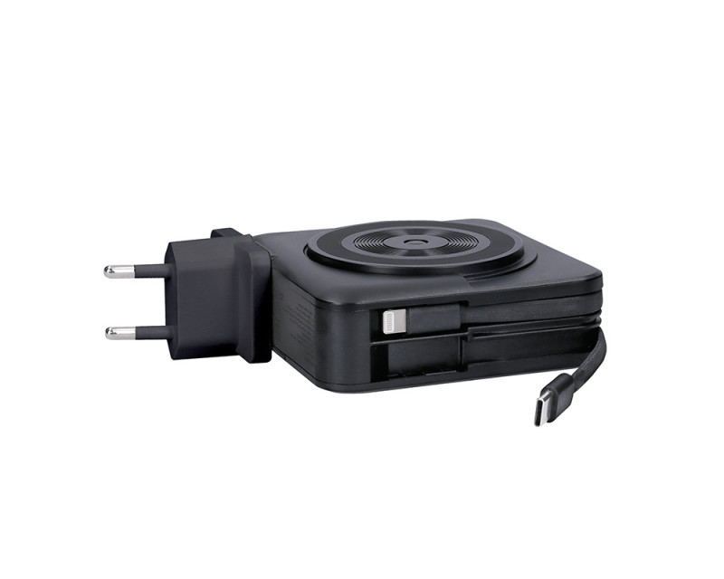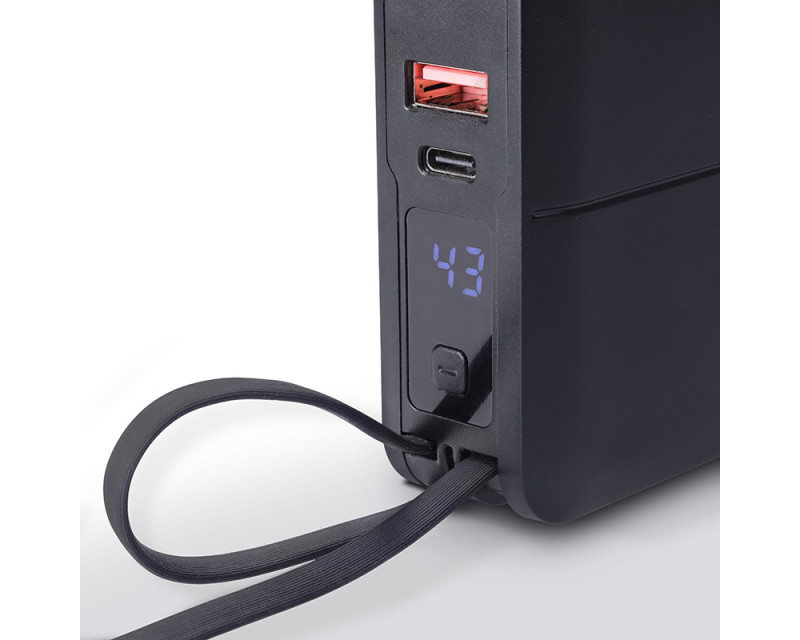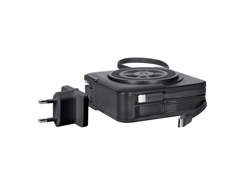 Power banka 10 000 mAh s bezdrátovým nabíjením. Výkonná power banka s kapacitou 10 000 mAh a bezdrátovým nabíjením (až 15W) umožňuje rychlé a pohodlné nabíjení vašich zařízení. Nabízí vstupy a výstupy USB-C, USB-A, Lightning kabel a USB-C kabel, takže je kompatibilní s širokou škálou zařízení. Podporuje rychlé nabíjení (USB-C: 5V/3A, 9V/2.22A, 12V/1.67A, USB-A: 5V/3A, 9V/2A, 12V/1.5A, 5V/4.5A).