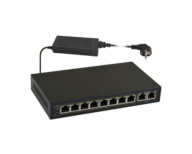 S108 10portový switch – 8x PoE 10/100Mbps + 2x uplink RJ45 10/100Mbps, PoE…