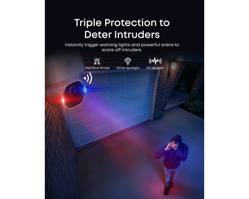 Ochrana proti vetřelcům: Vestavěná siréna a stroboskopické světlo se aktivují při detekci pohybu, aby odradily nežádoucí návštěvníky.