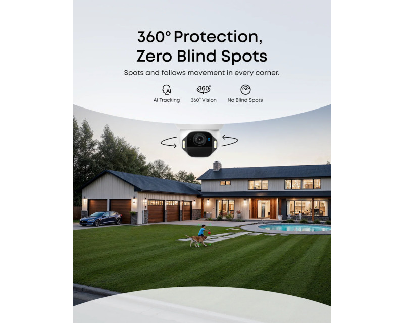 360° pokrytí: Díky funkci PTZ (pan-tilt-zoom) a širokému zornému úhlu pokryjete celý prostor bez slepých míst.