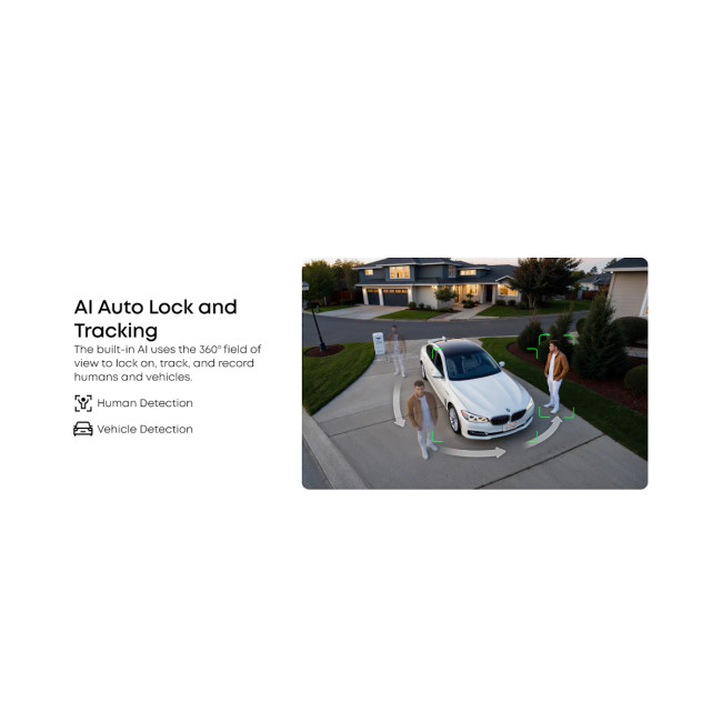 AI sledování pohybu: Vestavěná umělá inteligence automaticky detekuje a sleduje pohyb lidí, vozidel a dalších důležitých událostí, čímž minimalizuje falešné poplachy.