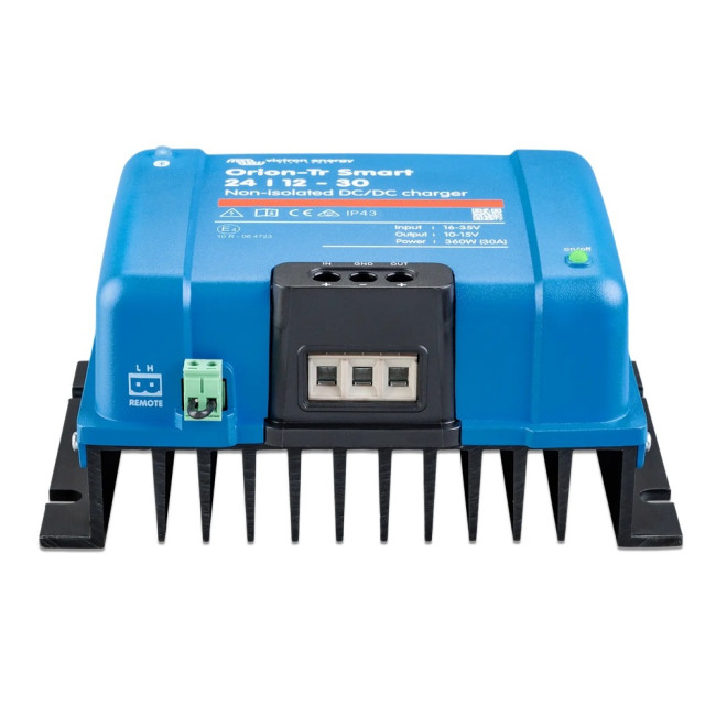 Nabíječka Orion-Tr Smart DC-DC neizolovaná je profesionální DC-DC adaptivní třístupňovou nabíječkou se zabudovanou funkcí Bluetooth. Je určena pro použití v duálních bateriových systémech ve vozidlech nebo na lodích, kde se k nabití servisní baterie používají (inteligentní) alternátor a startovací baterie. Jednotku lze monitorovat a programovat přes Bluetooth a ovládat dálkově pomocí dálkového spínače zapnutí/vypnutí. Nabíječka je také vybavena mechanismem detekce chodu motoru.