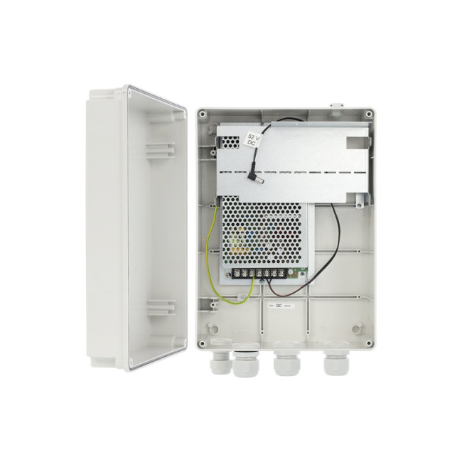 Switche a POE napájení Pulsar Napájecí systém – výstup 52VDC/120W, PoE celkem max. 120W, bez managementu, SCP/OLP/OVP/tamper ochrany, kovové šasi, stavové LED, rozměry 300 x 300 x 105mm, napájení 230VAC, zdroj vestavěný.
