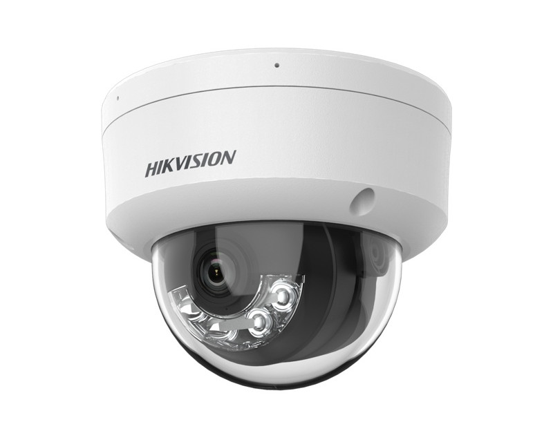 IP kamery 4Mpx, objektiv 4mm (85°), AcuSense, Smart Hybrid Light, vestavěný duální mikrofon, 1/2.9" CMOS, IR a bílý LED přísvit do 30m, 2688×1520@25fps, H.265+/H.265/H.264+/H.264/MJPEG, ICR filtr, 3D DNR, 120dB WDR, BLC, AGC, ONVIF, Hik-Connect, slot microSDXC (až 512GB), NAS, ANR, detekce pohybu, rozpoznání lidí/vozidel, detekce obličeje, 1× RJ-45 10/100M, provozní teplota -30°C~60°C, 12V DC/7.2W, PoE/7.2W, IP67, IK10, dome bílá