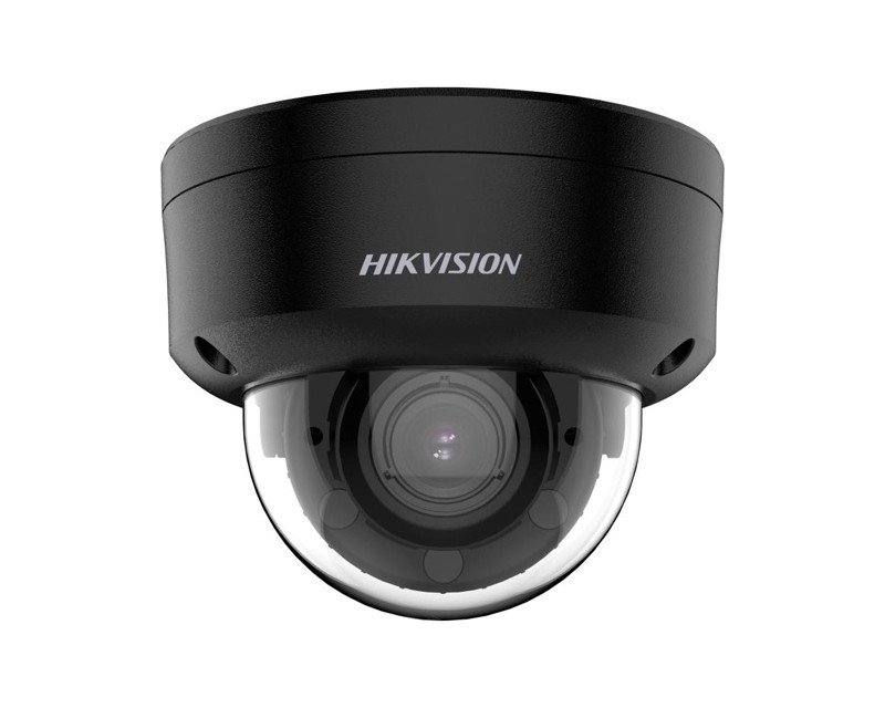 IP kamery 4Mpx, motorized varifocal objektiv 2.8-12mm, horizontální zorné pole 102.4° až 31.2°, vertikální zorné pole 54.7° až 17.6°, diagonální zorné pole 122.1° až 35.8°, 1/3" Progressive Scan CMOS, rozlišení 2688×1520 při 25fps, Smart Hybrid Light s IR a bílým LED přísvitem do 40m, H.265+/H.265/H.264+/H.264/MJPEG, AcuSense technologie s klasifikací lidí a vozidel a filtrem falešných poplachů, 3D DNR, WDR 120dB, ICR filtr, BLC, HLC, ONVIF, Hik-Connect, vestavěný duální mikrofon, slot microSDXC až 512GB, napájení 12V DC/13W, PoE+ (IEEE 802.3at), IP67, IK10, kovové mini dome provedení, provozní teplota -30°C až 60°C, černé provedení