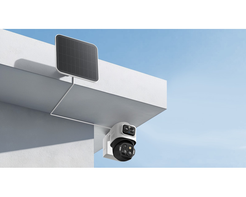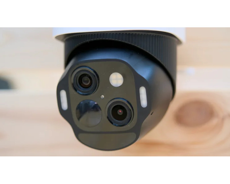 Kombinace 4K a 2K čoček: Horní 4K kamera s pevným 130° záběrem monitoruje klíčové oblasti, spodní dvojitá 2K PTZ kamera nabízí 360° panorámu, 70° náklon a 8× hybridní zoom pro detailní sledování.
