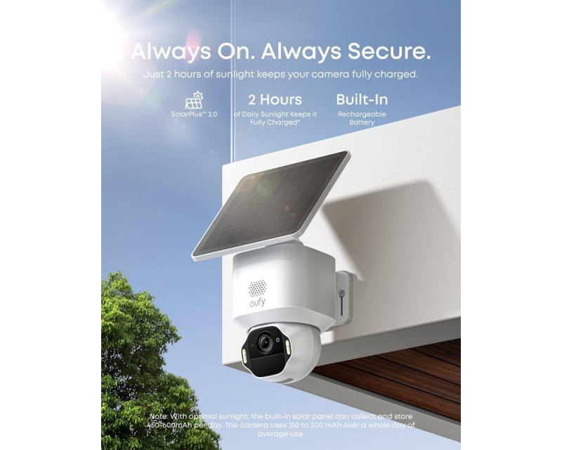 Eufy SoloCam E42 je moderní venkovní bezpečnostní kamera s vysokým rozlišením a napájením z baterie nebo solárního panelu. Je určena pro samostatné použití bez nutnosti předplatného a nabízí kvalitní záznam i chytré funkce díky vestavěné umělé inteligenci.