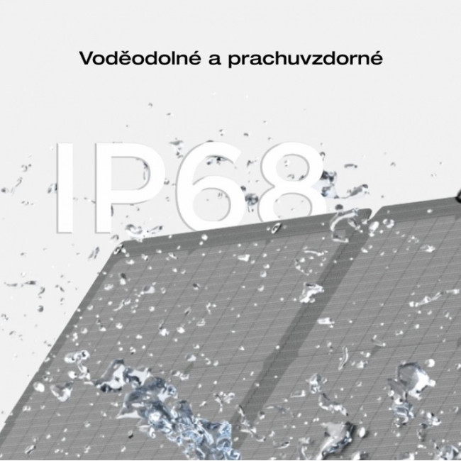 60 W solární panely EcoFlow vám kryjí záda za všech okolností a za každého počasí. Díky stupni krytí IP67 jsou naprosto prachuvzdorné a voděodolné, takže jsou jako stvořené pro outdoorové aktivity. Navíc 0,2 mm tenký ochranný ETFE UV filtr chrání povrch produktu a zvyšuje tak tím jeho životnost.