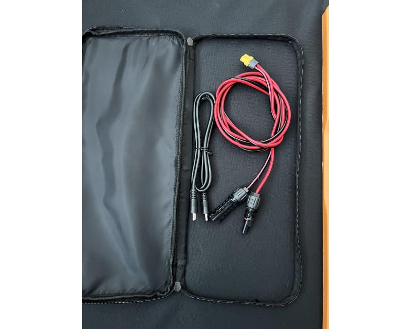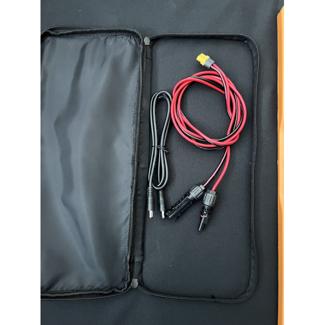 Solární panel je vybavený monokrystalickými články s účinností až 22%, odolným nylonovým pouzdrem, zabudovanou kapsou. Součástí je i skládací podpěra pro snadné rozložení.