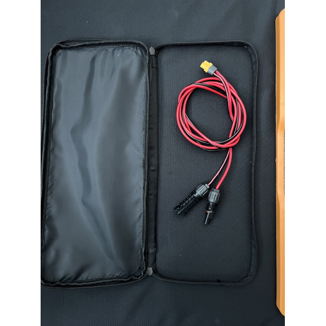 Solární panel je vybavený monokrystalickými články s účinností až 22%, odolným nylonovým pouzdrem, zabudovanou kapsou. Součástí je i skládací podpěra pro snadné rozložení.