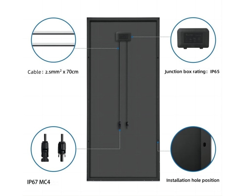- Panel vysokého výkonu a s rychloupínacím systémem s konektory MC4.