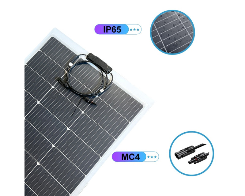 Flexibilní solární panely SOLARFAM byly speciálně navrženy pro mobilní aplikace. Fotovoltaický solární panel SOLARFAM 100W je vyroben z monokrystalického křemíku. Velikost panelu je 1230 x 470 x 2 mm a panel má výkon 100 W. Ideálně se hodí jako nezávislý zdroj energie pro táborníky, přívěsy, jachty a čluny. Vyznačují se vysokým výkonem pro monokrystalické moduly, plně flexibilní a vodotěsnou konstrukcí.