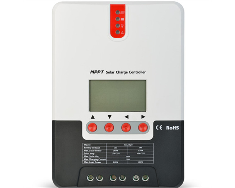 Regulátor nabíjení MPPT s vestavěným modulem MPPT a displejem. Účinnost sledování MPPT je 99,9%. Podporuje gelové, uzavřené, údržbové a lithiové baterie.