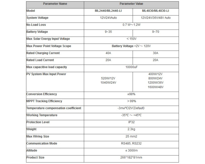 Regulátor nabíjení MPPT s vestavěným modulem MPPT a displejem. Účinnost sledování MPPT je 99,9%. Podporuje gelové, uzavřené, údržbové a lithiové baterie.