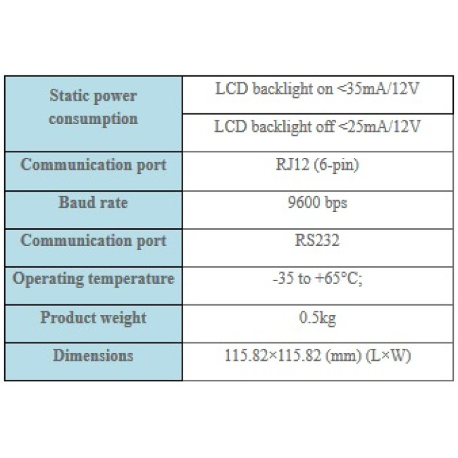 - Obsahuje standardní rozhraní RJ12 jako komunikační rozhraní.