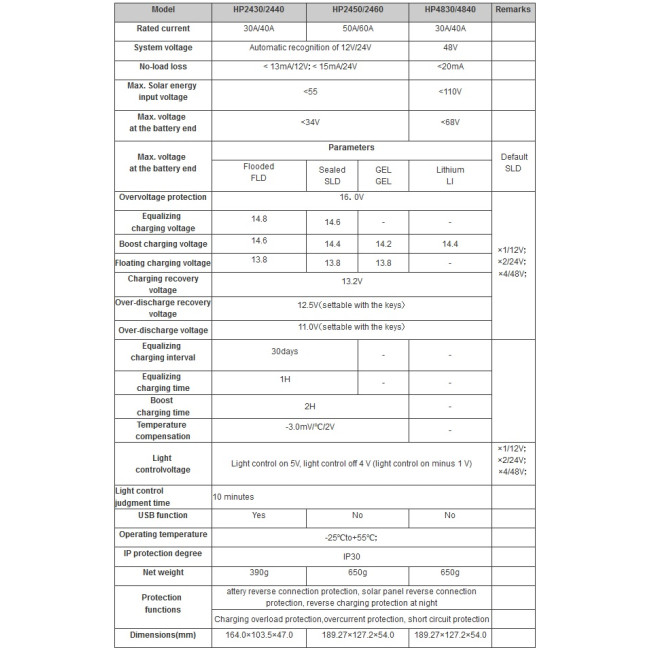 2. Podporuje aktualizovaný třístupňový algoritmus nabíjení PWM. Použití pravidelného vyrovnávacího nabíjení baterií. Velmi dobře zabraňuje nadměrnému vybíjení baterií a tím se prodloužuje jejich životnost.