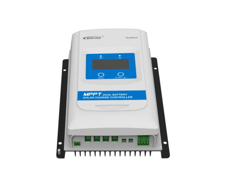MPPT regulátor série DuoRacer je určen k nabíjení dvou baterií vhodný pro karavany, lodě atd. Napětí panelů až 60 V a maximálním nabíjecím proudem 10 A, baterie 12/24 V, FV max. 130/260 Wp.