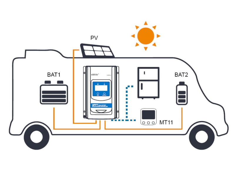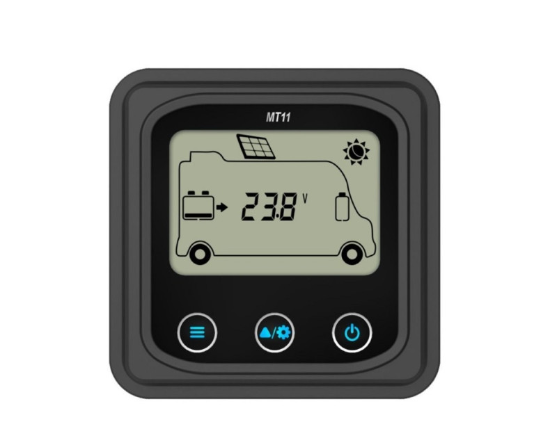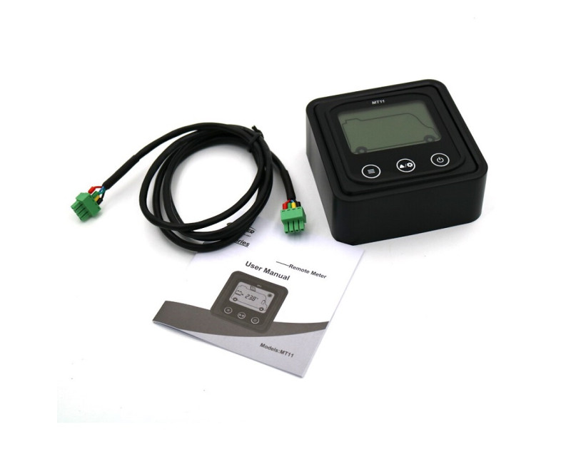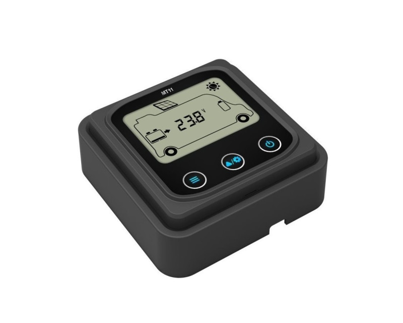 Externí displej řady MT je příslušenství, které je kompatibilní s regulátory řady DuoRacer. Můžete monitorovat provozní data a pracovní stav regulátoru pomocí LCD. Na externím displeji můžete procházet parametry regulátoru, nastavovat typ baterie a jednotky teploty a mazat vygenerovanou energii. Je vhodný pro RV, karavany, lodě atd.