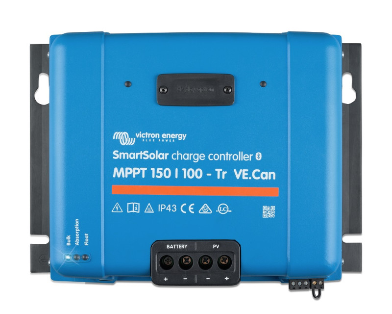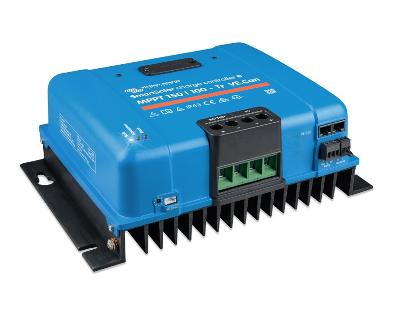 Robustní a rychlý MPPT regulátor s VE.Can pro náročné podmínky s napětím panelů až 150 V, nabíjecí proud 100 A. Baterie 12/24/48V, FV max 1450/2900/5800Wp. Vestavěný Bluetooth a konektor pro zásuvný displej.