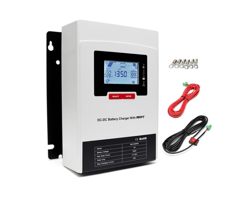 SRNE MD1250N05 solární MPPT regulátor s DC/DC nabíječkou, 12V, 50A, vstup 55V DC