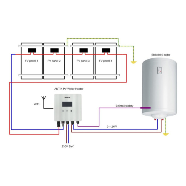- Efektivní způsob využití fotovoltaiky pro domácnosti a chaty s nejrychlejší návratností je fotovoltaický ohřev vody. Stačí namontovat fotovoltaické panely na střechu, připojit ANTIK PV Water Heater a k němu váš aktuální bojler na teplou vodu.