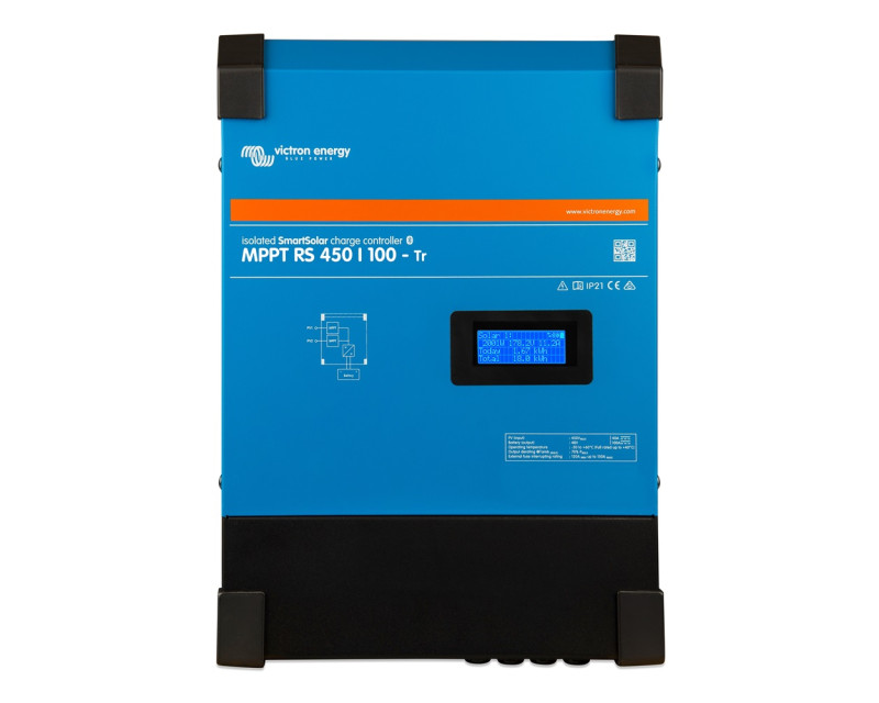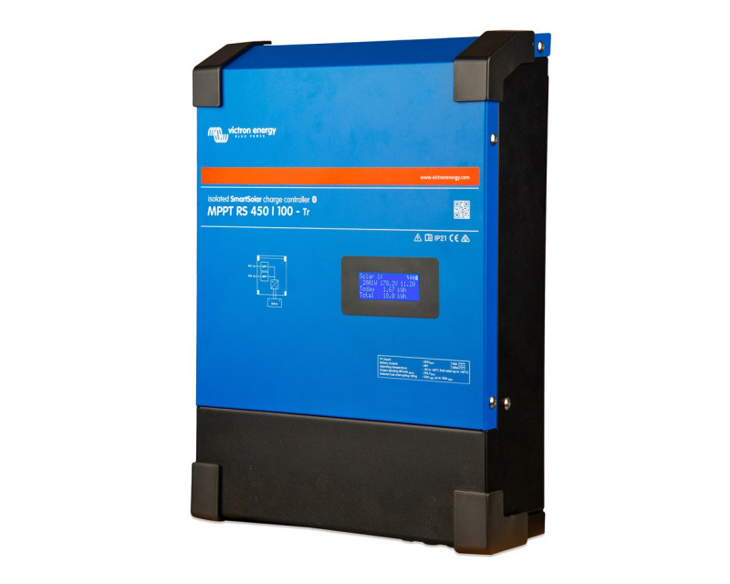 MPPT RS SmartSolar je 48 V solární regulátor nabíjení s až 450 V DC PV vstupem a 100 A. Používá se v solárních aplikacích on-grid a off-grid, kde je požadovaný maximální nabíjecí výkon baterie.