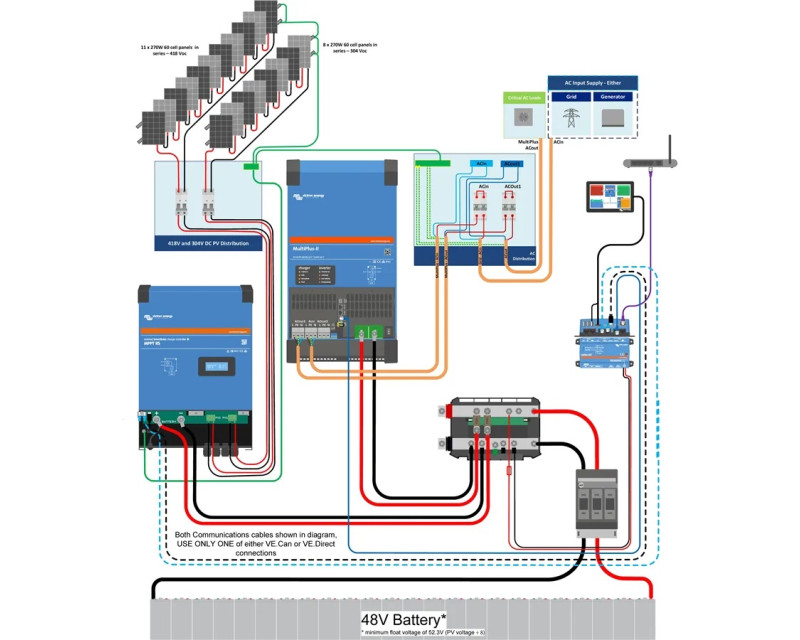 Pro připojení k zařízení GX pro monitorování systému, protokolování dat a vzdálené aktualizace firmwaru. VE.Can umožňuje paralelně propojit až 25 jednotek a synchronizovat jejich nabíjení.