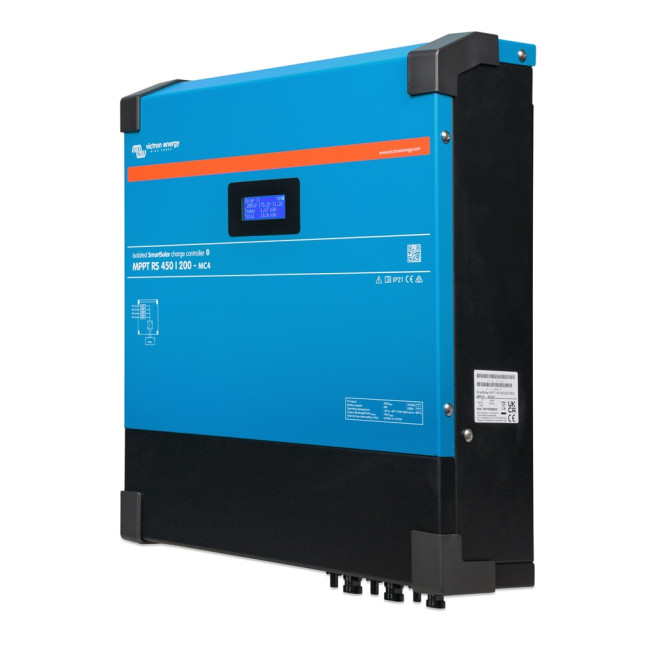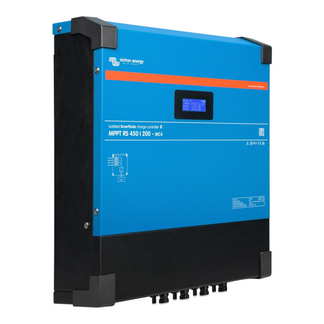 MPPT RS SmartSolar je 48 V solární regulátor nabíjení s až 450 V DC PV vstupem 200 A, s konektory MC4. Používá se v solárních aplikacích on-grid a off-grid, kde je požadovaný maximální nabíjecí výkon baterie.