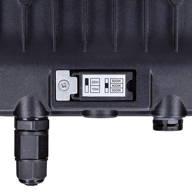 Profesionální LED reflektor řady TOP nabízí ideální kombinaci flexibility, výkonu a úsporného provozu. Díky přepínatelnému výkonu 10/20W si snadno zvolíte intenzitu světla podle potřeby (1300/2600lm). Reflektor navíc disponuje přepínačem chromatičnosti v rozsahu 3000K–5000K (teplá, neutrální nebo studená bílá), což umožňuje maximální přizpůsobení prostředí i denní době.