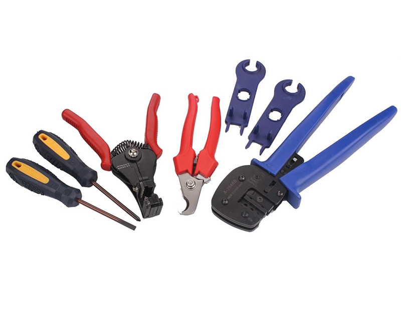 Sada nářadí pro práci se solárními konektory typu MC3 a MC4.