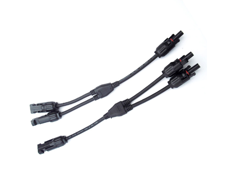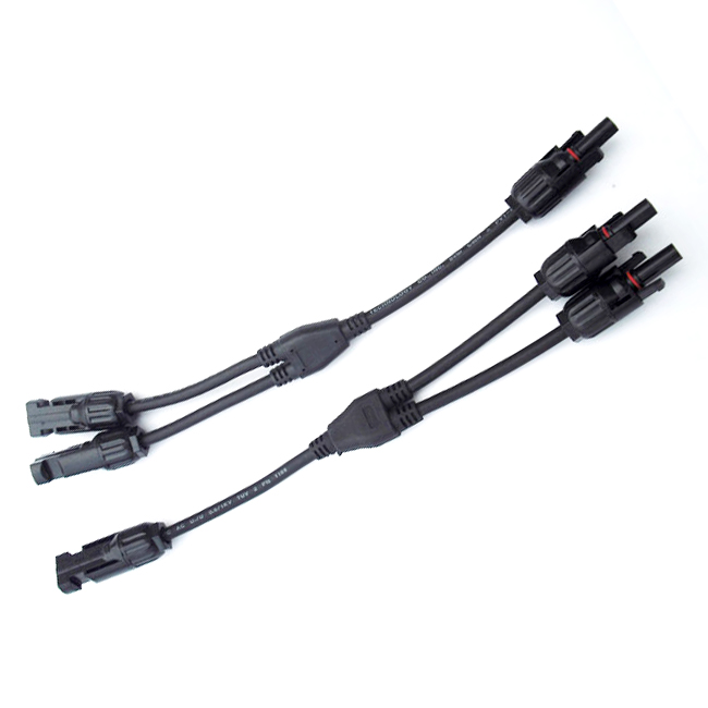 MC4 rozbočovací konektor je vyroben z 25 cm dlouhého (celková délka) kabelu o průřezu 4 mm2 (AWG12) a odolného plastu, který zajišťuje pevnost a spolehlivost. Konektory jsou vybaveny pryžovými těsněními s krytím IP65, jsou tedy ideální pro venkovní použití. Určené pro kabeláž solárních aplikací.